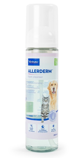 Allerderm Foam is de perfecte oplossing om de vacht van de hond of kat te reinigen. Het reiniggingsschuim is gemakkelijk in gebruik, hoeft niet te worden uitgespoeld en is mild voor de huid.
