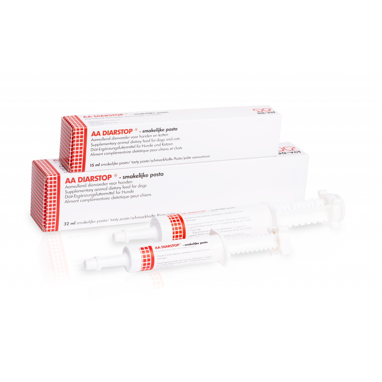 AA Diarstop Paste is easy to administer to your pet and has an attractive taste appreciated by many dogs and cats. It can be administered directly into your pet’s mouth or mixed with food. The recommended duration of use is 3 days, longer if necessary on the advice of your vet.