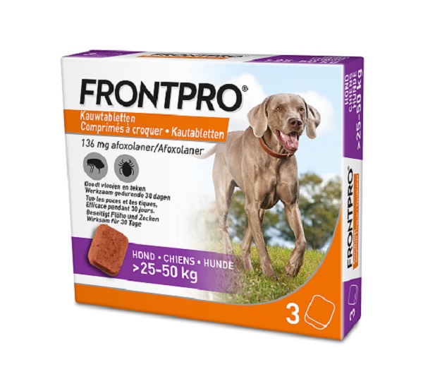 Dog >25-50 kg: 1 tablet Frontpro 136 mg
