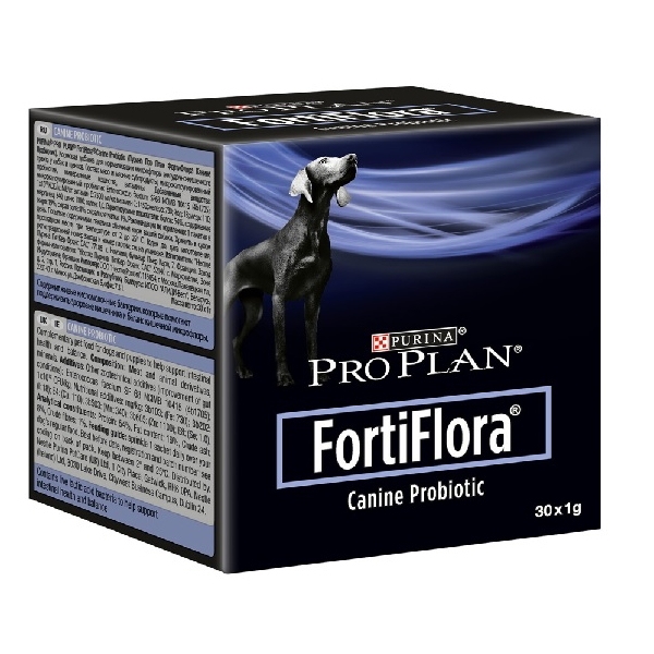 Een doosje Purina Pro Plan FortiFlora hond bevat 30 zakjes met 1 gram probiotica poeder, om éénmaal per dag over het normale voer te strooien. Voor een optimaal resultaat houdt u de dosering aan zoals Purina adviseert: