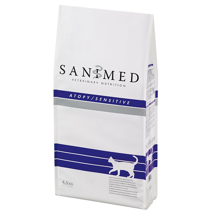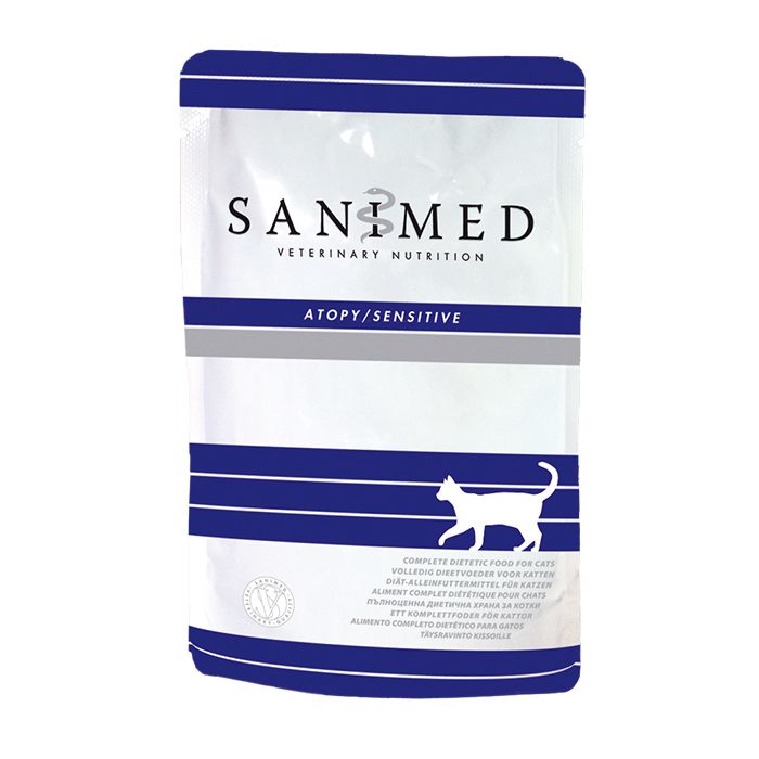 Sanimed Atopy/Sensitive voor de kat, nu bekend onder de nieuwe productnaam Sanimed Skin/Sensitive, is een dieetvoeding ter vermindering van intoleranties voor bepaalde ingrediënten en/of voedingstoffen en ter ondersteuning van de huidfunctie bij huidaandoening en overmatig haaruitval.