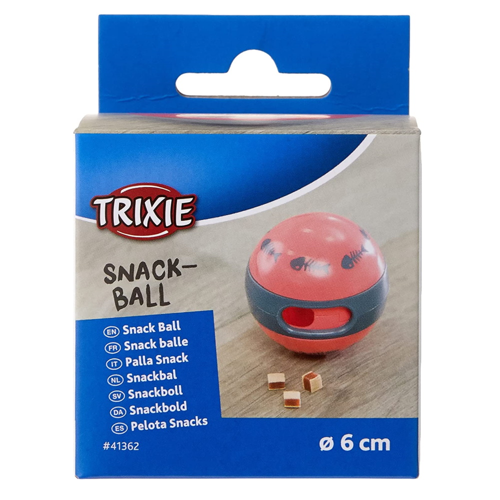 Trixie Cat Activity snackbal kunt u vullen met beloningssnoepjes en door de bal te laten rollen vallen de snacks eruit. Deze heeft een verstelbare opening ter dosering van de lekkernijen. De meeste katten willen niet alleen fysiek, maar ook mentaal worden afgeleid. Bij dit kattenspeelgoed moet de kat iets voor zijn beloning doen en kleine opdrachten uitvoeren, om met behulp van poot of snuit bij de snacks te komen. Dit schoolt de vaardigheid van de kat. De Trixie Cat Activity snackbal heeft een diameter van 6 cm en is verkrijgbaar in de kleuren koraal/wit en koraal/grijs. Een kleurkeuze is helaas niet mogelijk.